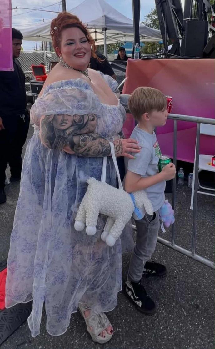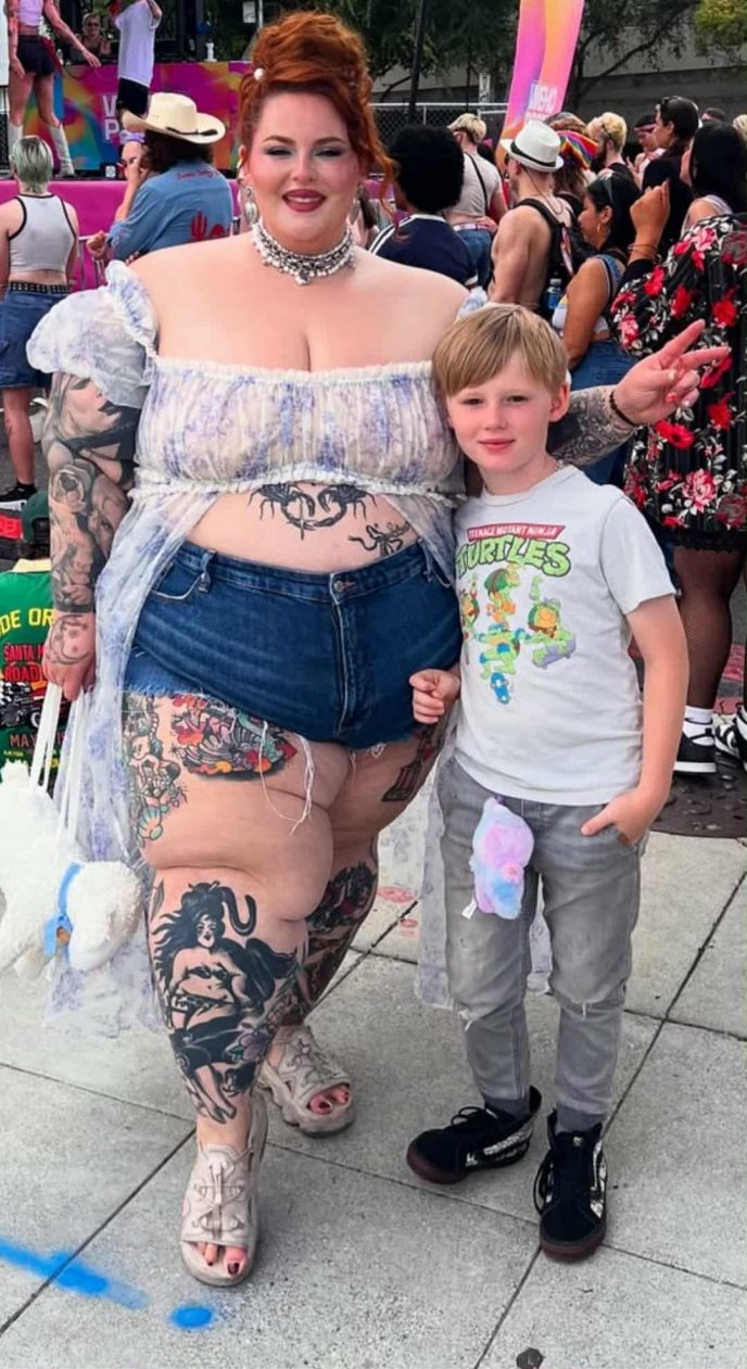 155-килограммовая модель- Тесс Холлидей неоднократно заявляла о том, что она принимает себя такой, какая она есть. Невзирая на нестандартную красоту, Тесс принимает участие в различных съемках и чувствует себя востребованной. На днях красавица в ультракоротких шортах и полупрозрачном топе вышла в свет с 15-летним сыном- подростком.